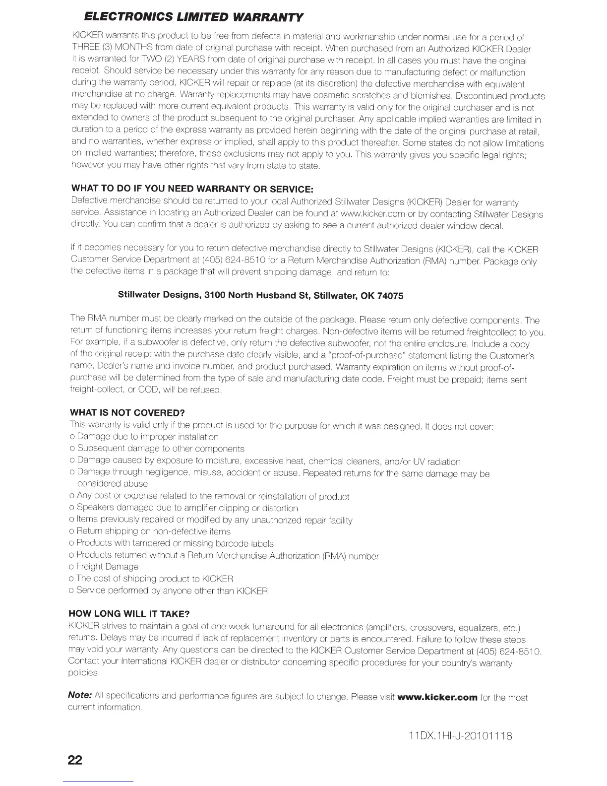 Authorized Dealer can be found at www.kicker.com or by contacting Stillwater Designs