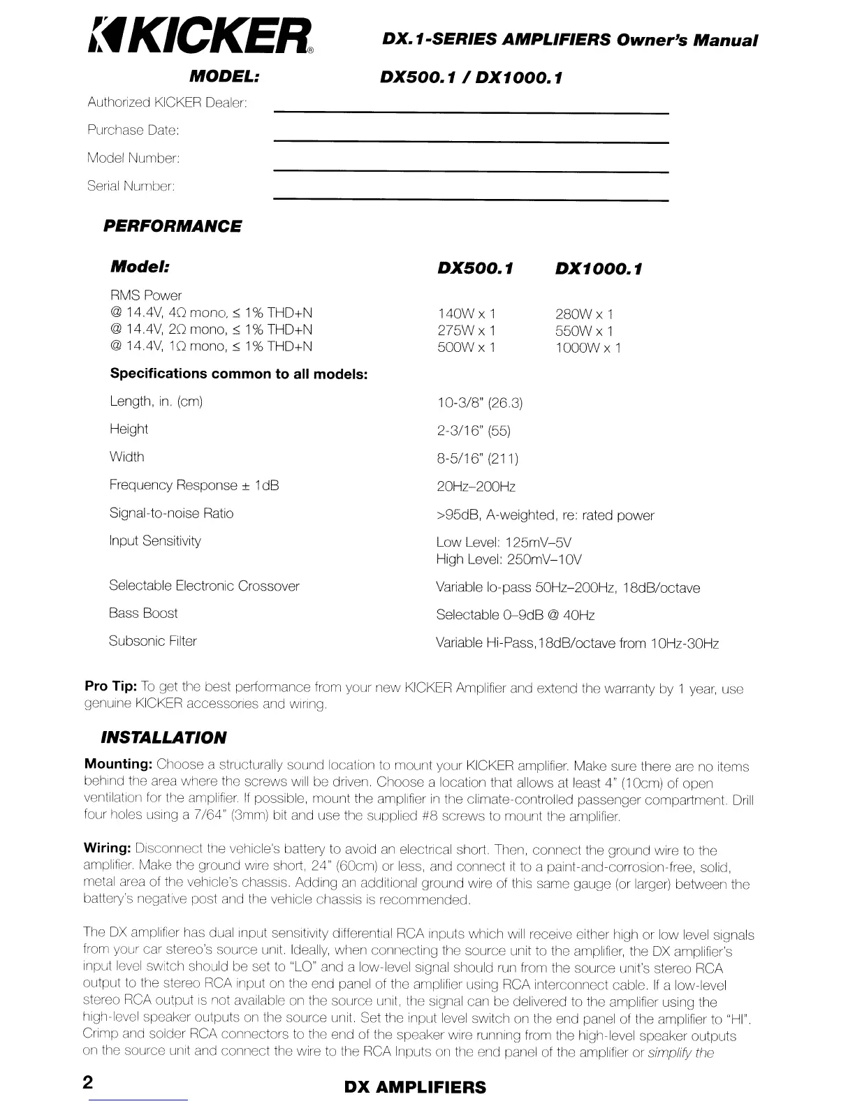 amplifier. Make the ground wire short, 24" (60cm) or less, and connect