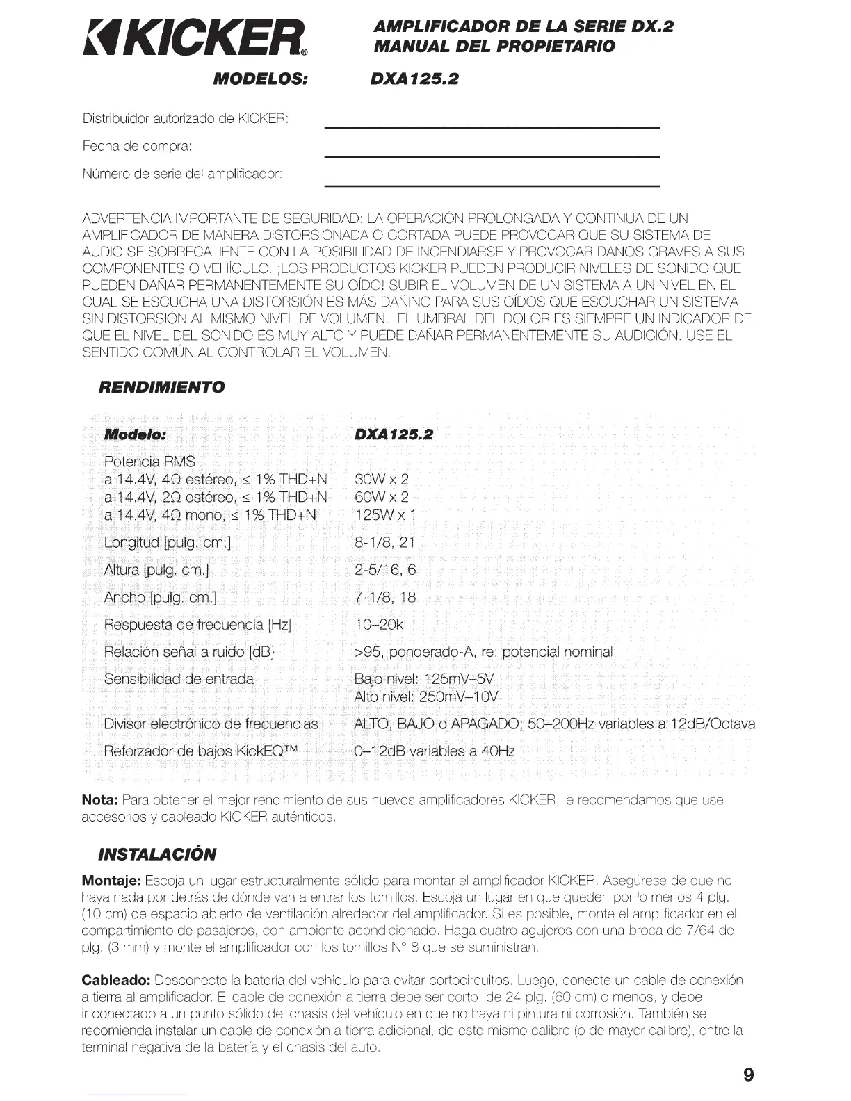 COMPONENTES 0 VEHfCULO. iLOS PRODUCTOS KICKER PUEDEN PRODUCIR NIVELES
