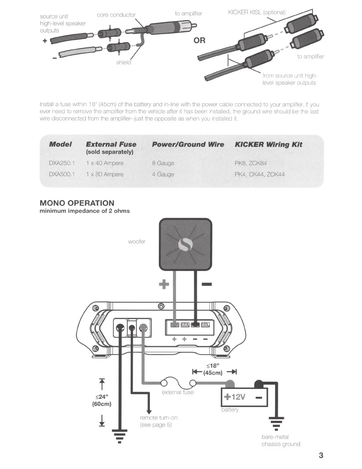 Install a fuse within 18" (45cm) of the battery and in-line with the power cable connected to your amplifier.
