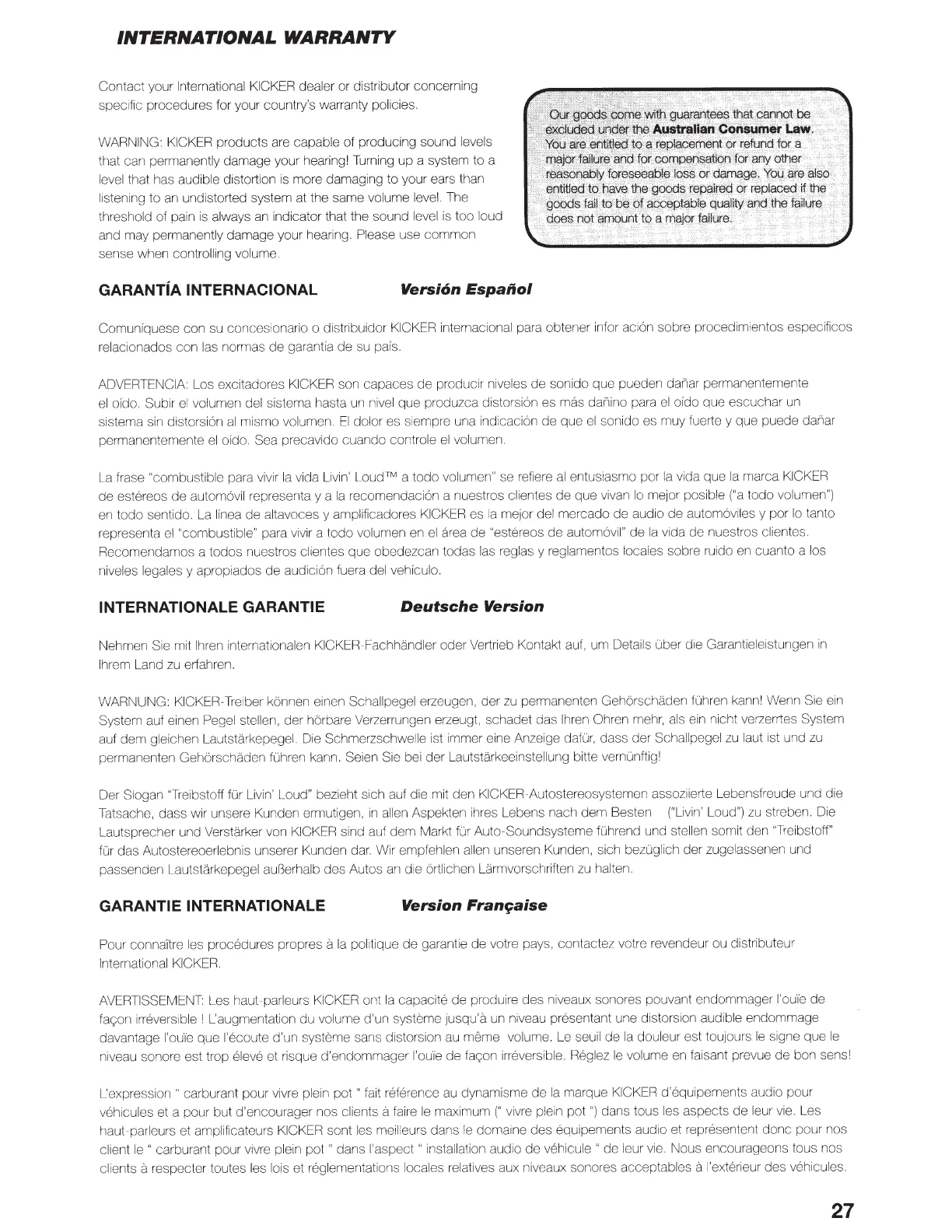 WARNING: KICKER products are capable