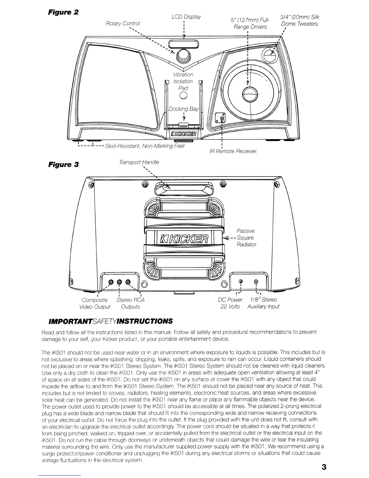impede the airflow to and from the iK501 Stereo System. The iK501 should not be placed near any source of heat. This