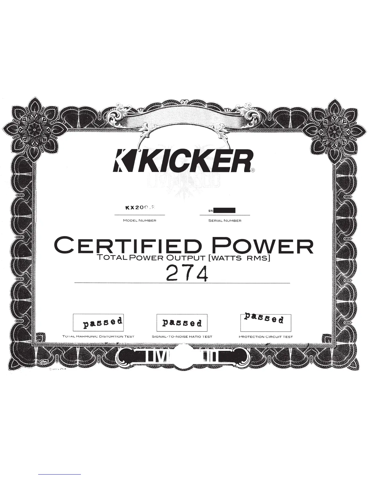 Kicker KX200.2 - Certified Power Test Results; Test Result Summary