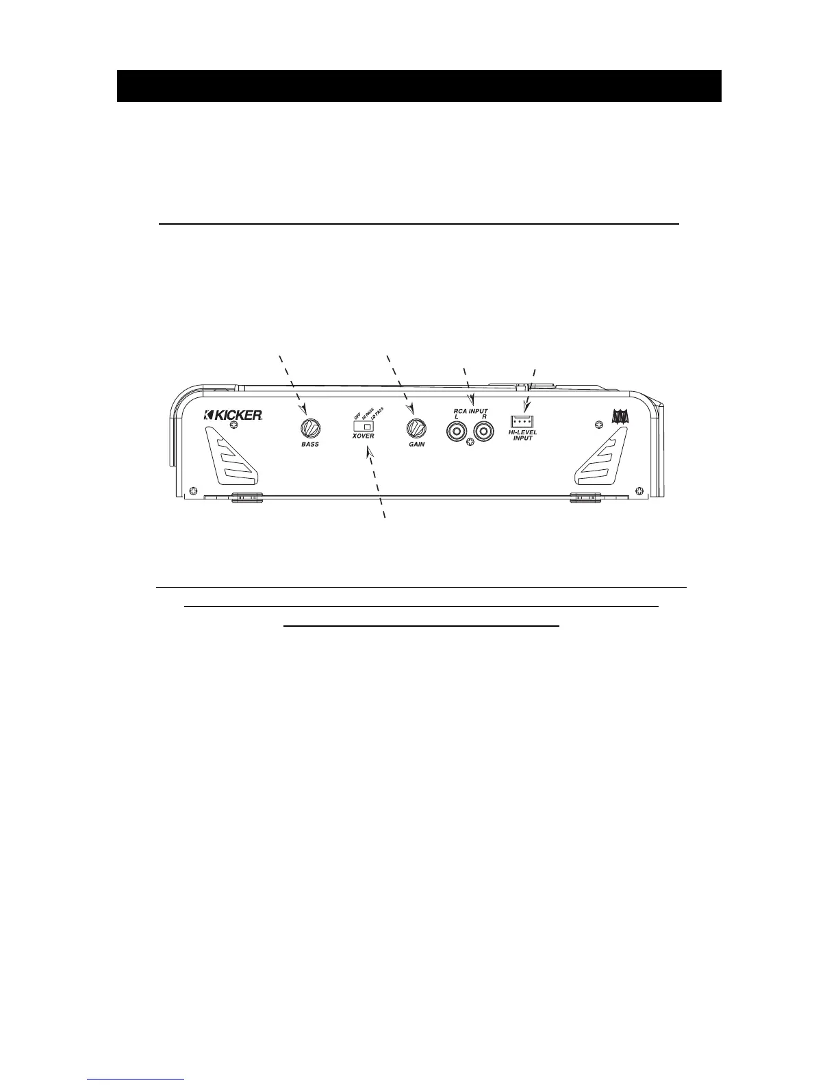 Your Kicker amplifier has two rotary controls and one switch on the end panel.