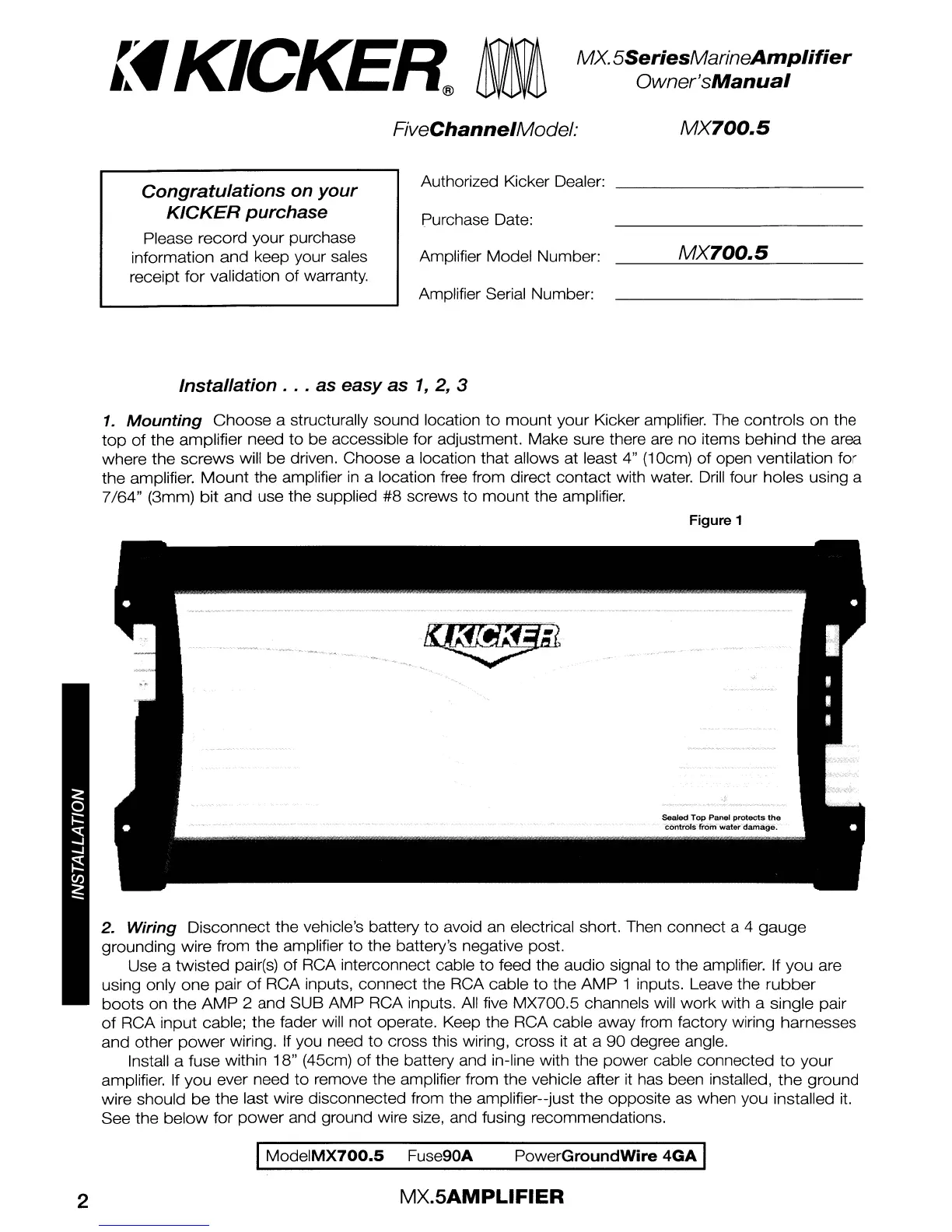 (3mm) bit and use the supplied #8 screws to mount the amplifier.