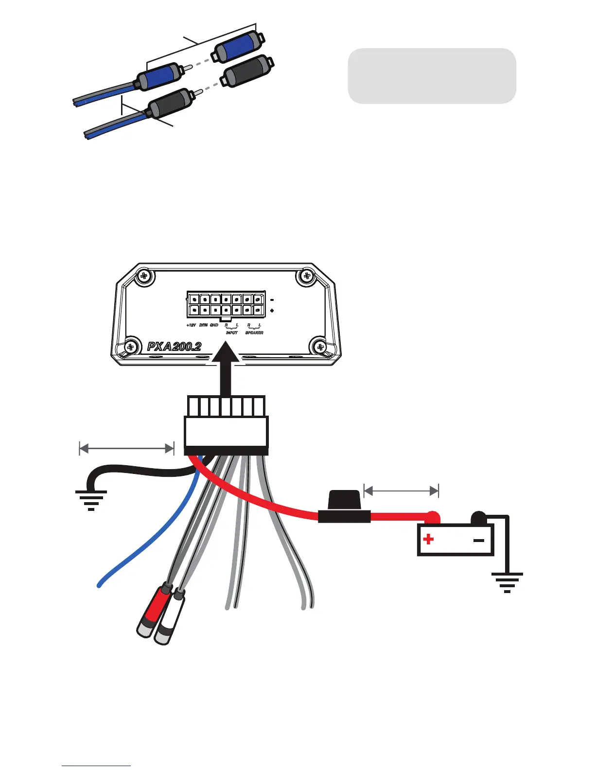 Cut the looped red power cable located on the PXA harness and install a 15A fuse. Fuse installation should be