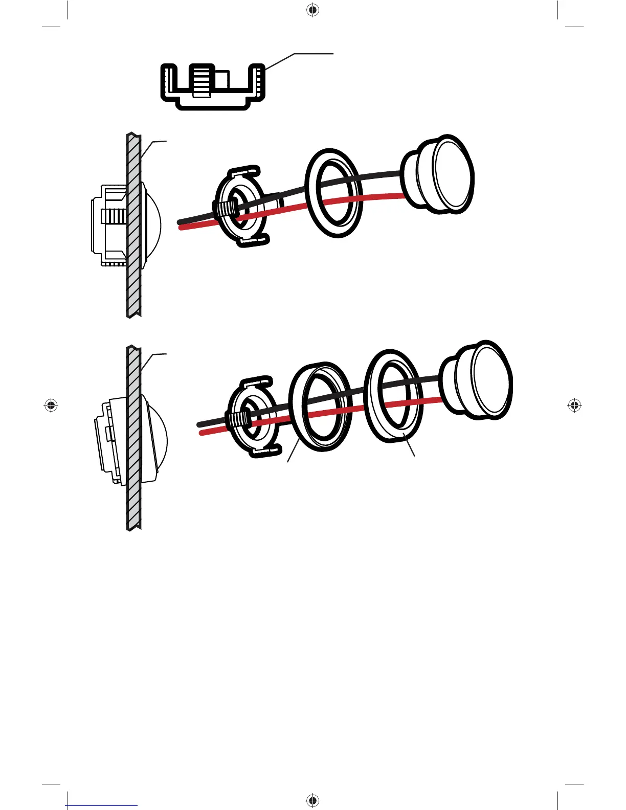 Verkleidung. Verlegen Sie das Kabel durch den optionalen Ring für bündigen Einbau, durch das Loch in
