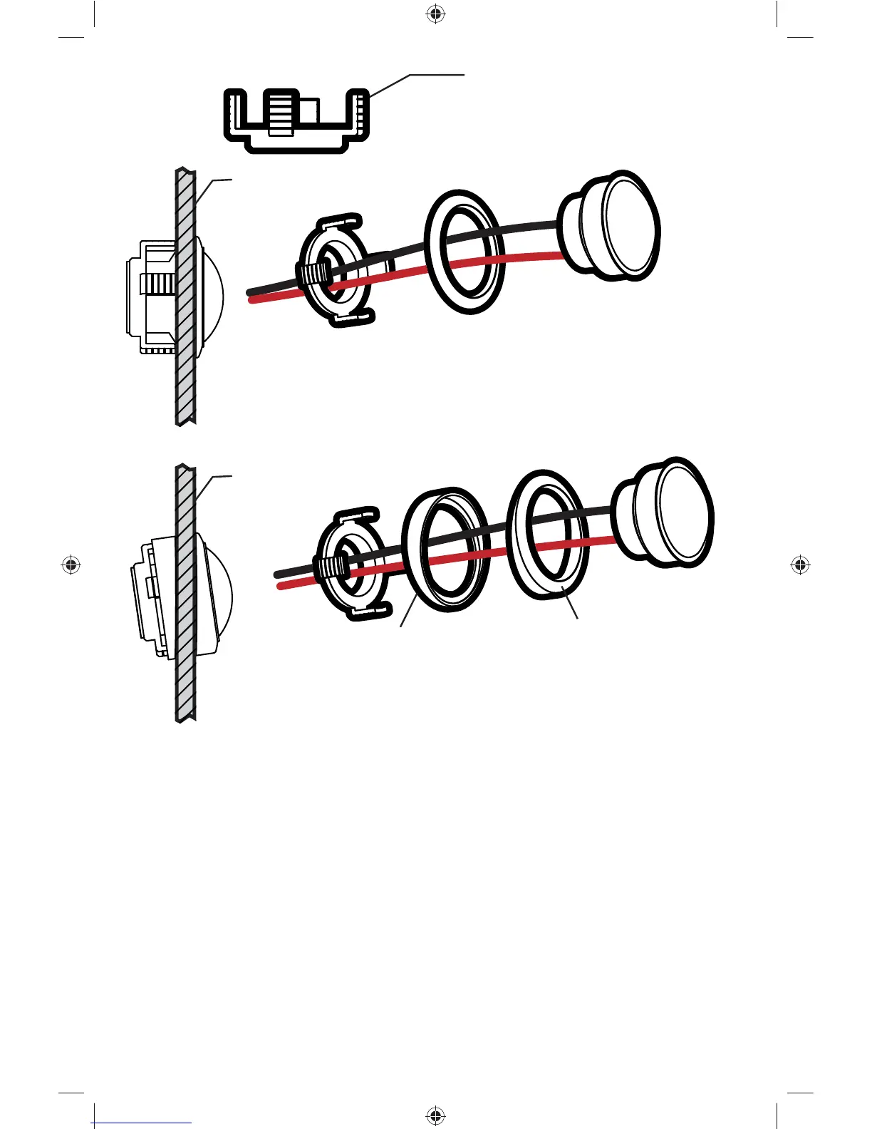 wire through the optional fl ush ring, the hole in the panel, and the mounting nut. Mount the tweeter by