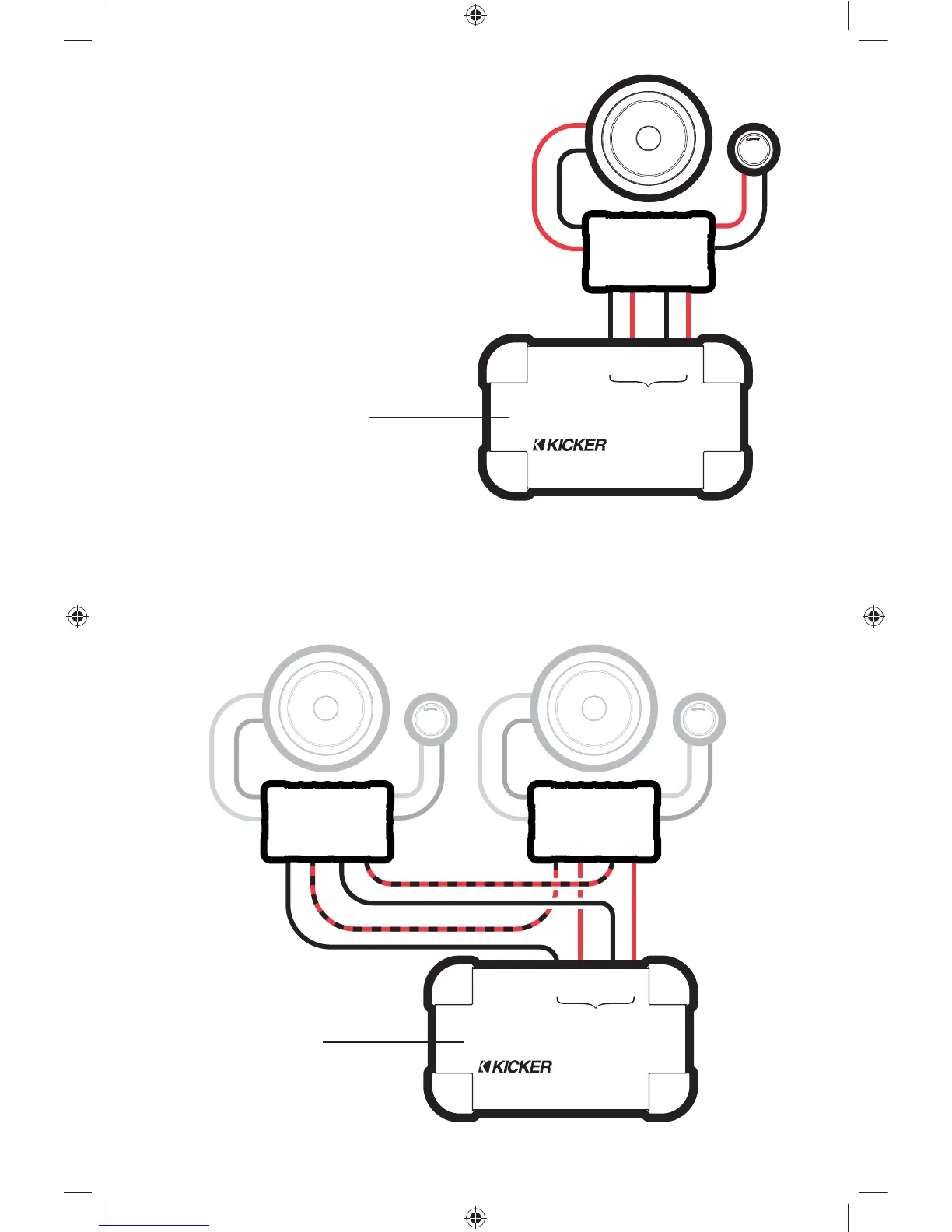 At least four amplifi er channels are needed for stereo operation (only two channels are shown)•