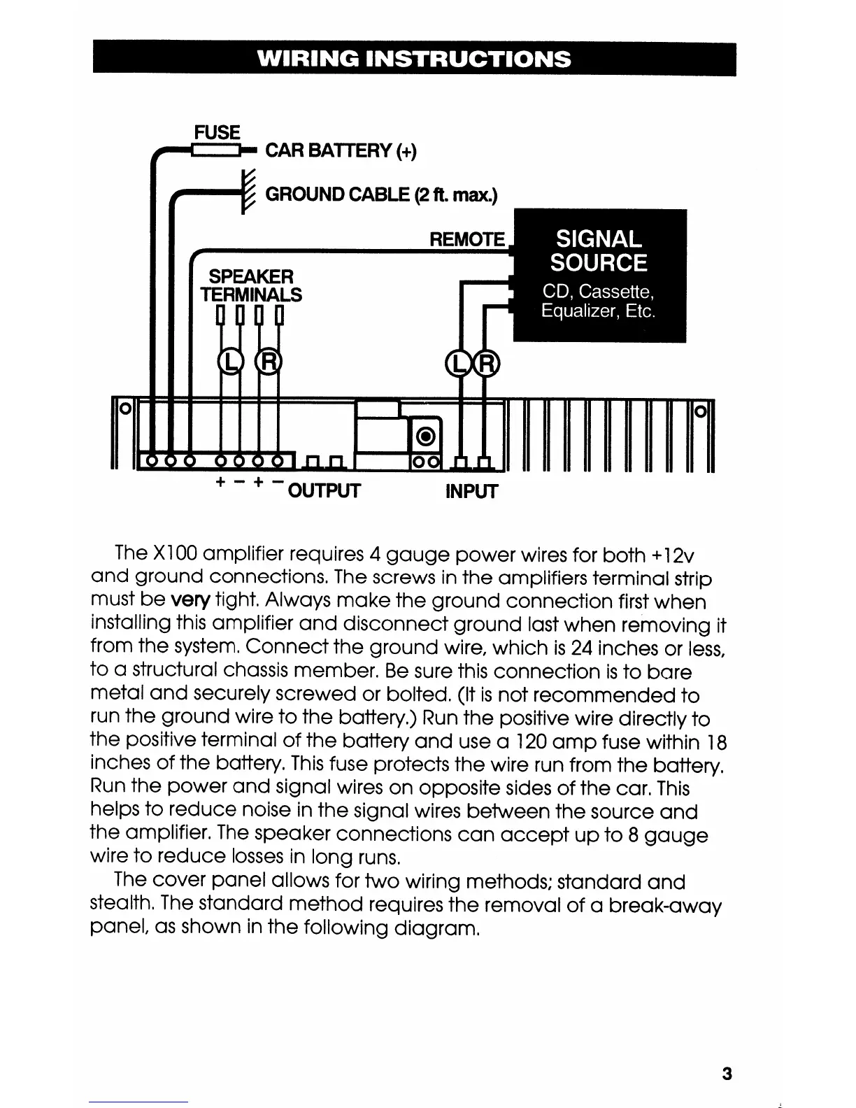 Kicker X100 Competition - Wiring Instructions; Signal Source