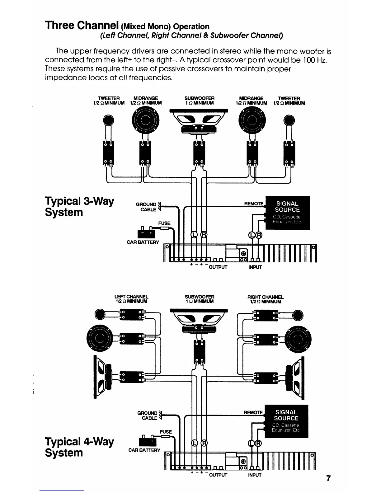Kicker X100 Competition - Three Channel Operation; Typical 3-Way System; Typical 4-Way System