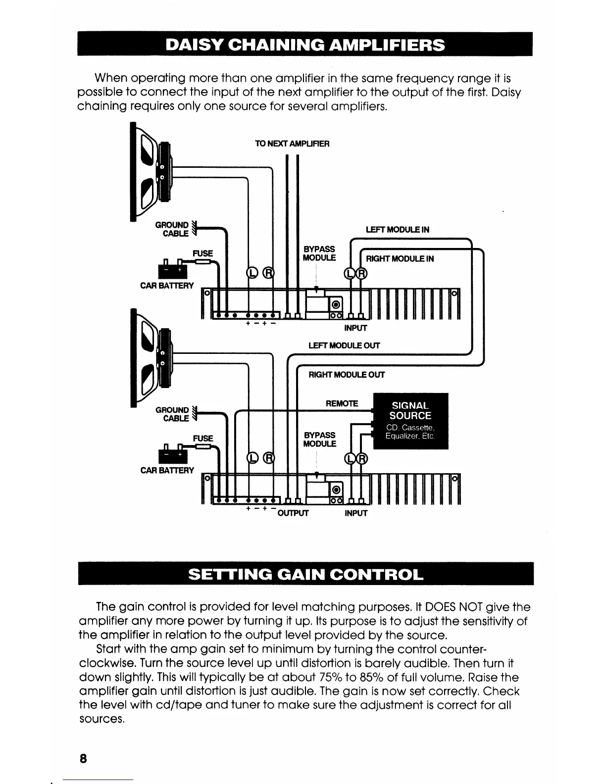 Kicker X100 Competition - Daisy Chaining Amplifiers; Setting Gain Control