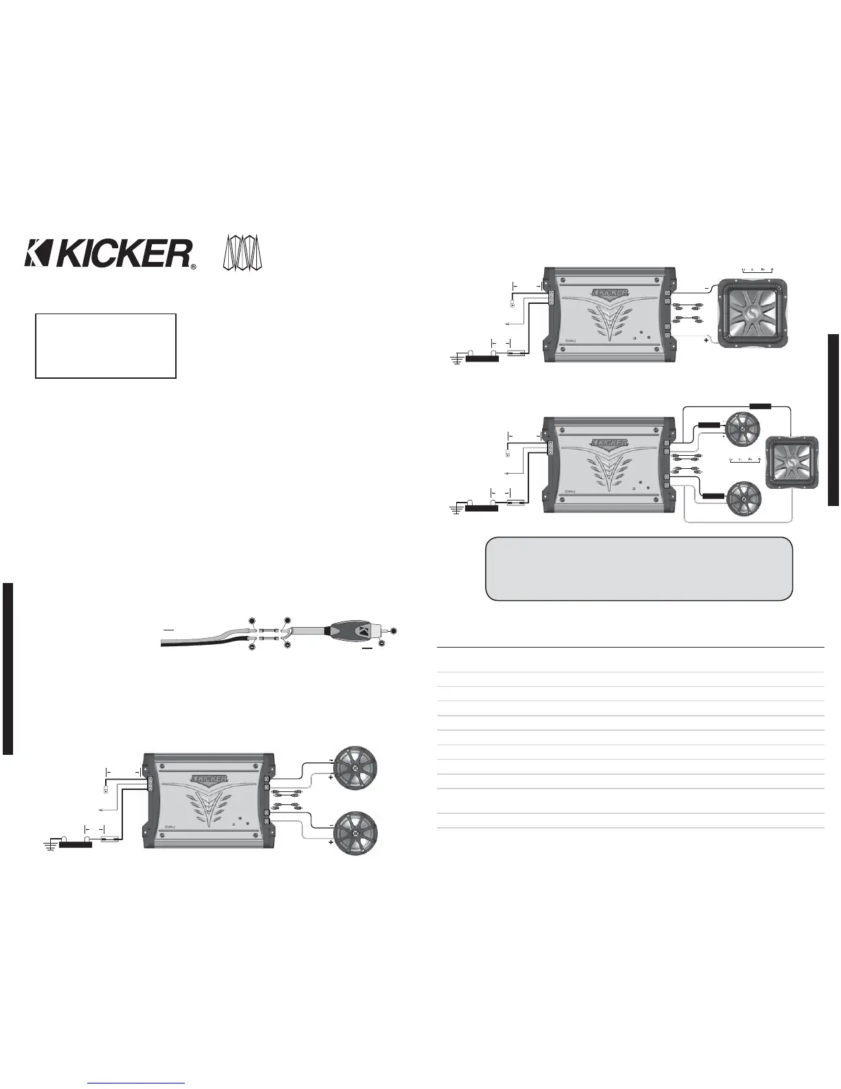 Note: To get the best performance from your new Kicker Amplifi er, we recommend using genuine Kicker Accessories and Wiring.