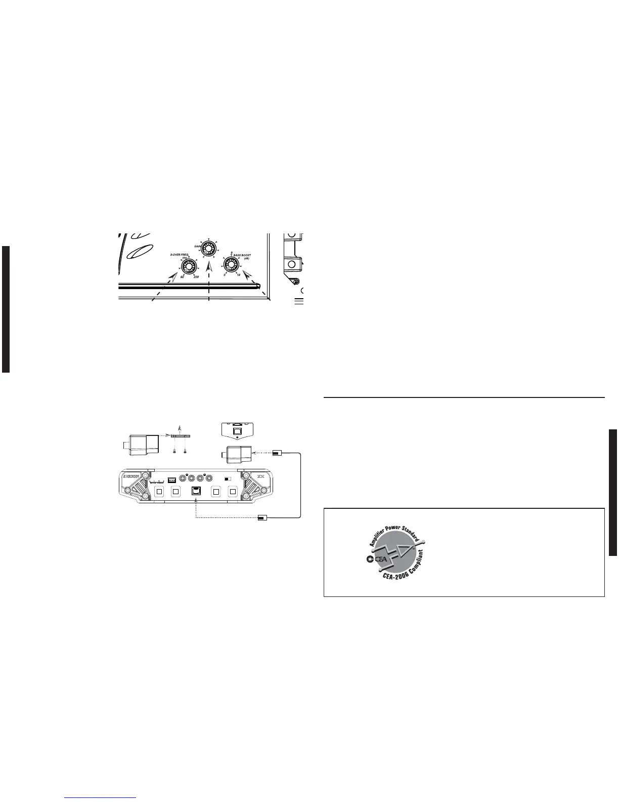 eléctrico y de carga del vehículo. 3) El amplificador sólo funcionará a niveles de volúmenes bajos. La protección contra cortocircuito