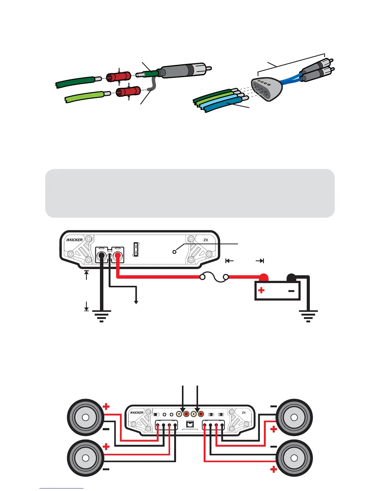 by using a KICKER ZISL as shown below. Keep the audio signal cable away from factory wiring harnesses and