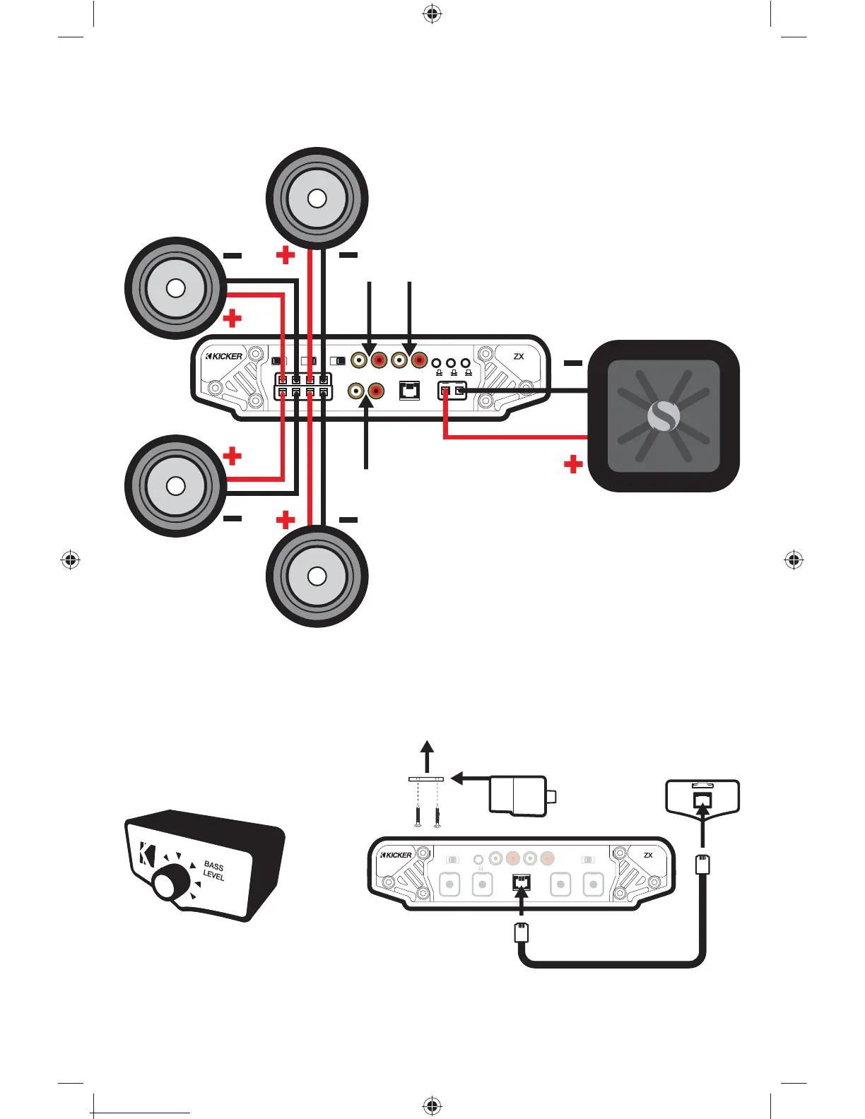 Kicker ZX700.5 - Four Channel Operation; ZXRC Remote Bass Installation