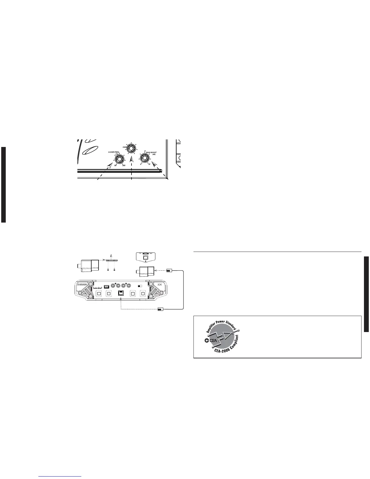 Ihr ZX 2 KICKER Verstaerker hat vorne 3 Drehknoepfe und einen seitlichen Schalter.