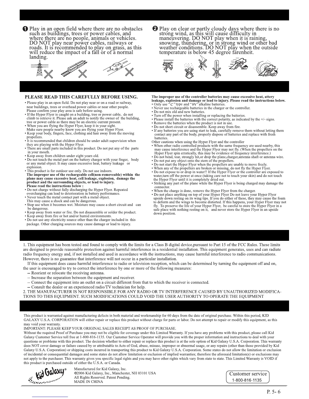 Kid Galaxy Hyper Flyer - Warranty; 5) Caution; 6) Warning; 7) FCC Requirement