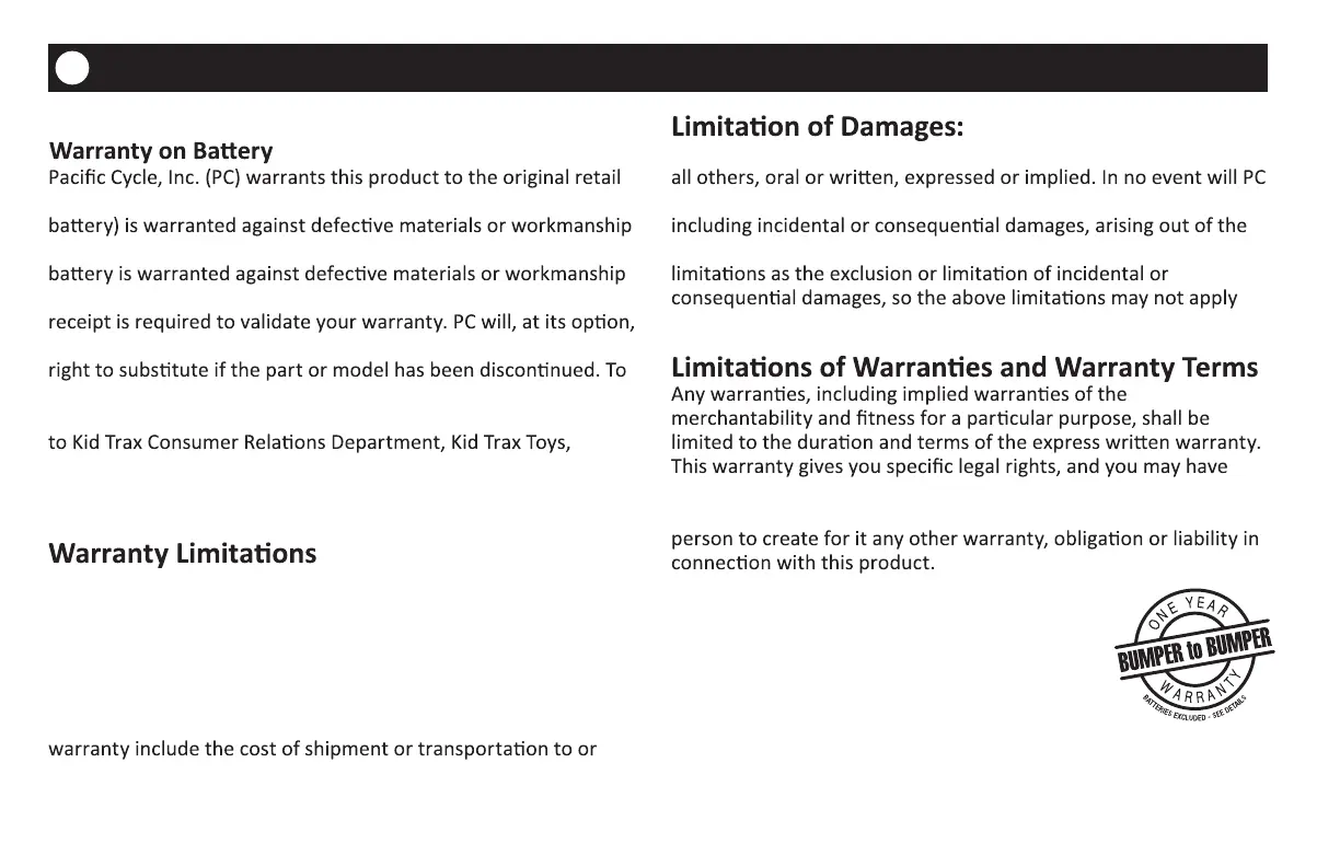 purchaser as follows: The ride-on toy (except for the 12-volt