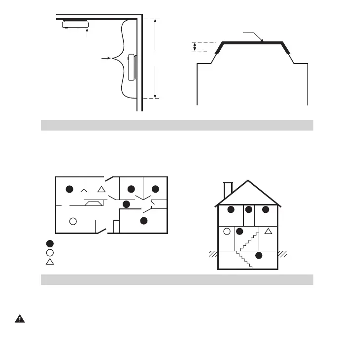 ceiling are either hot or cold compared to the room air temperature, install the alarm on an inside wall.