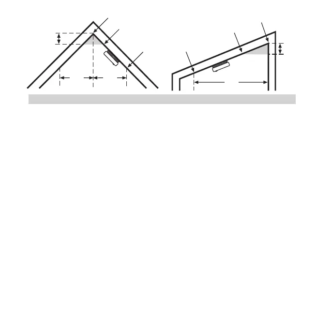 • Less than 4” (10cm) from the peak of an “A” frame type ceiling.