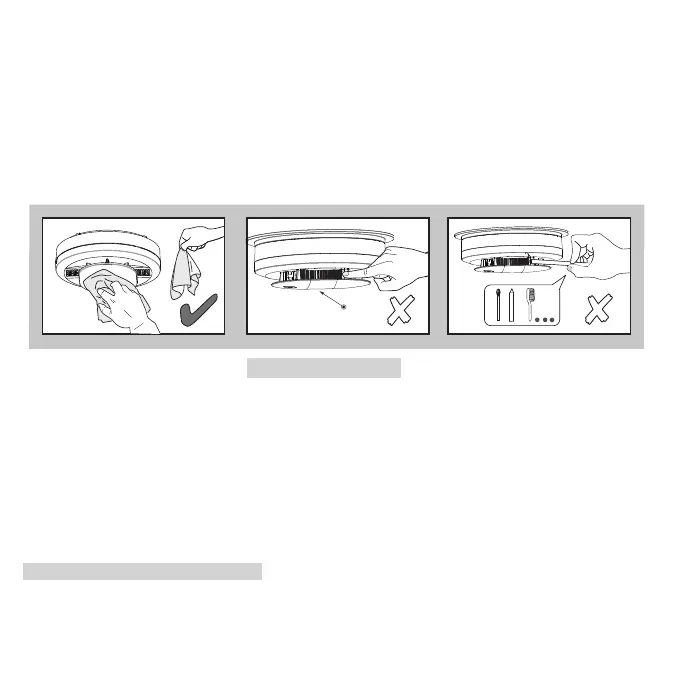 • Do not use a hair dryer to clean the alarm, as it may damage the alarm and impact performance.