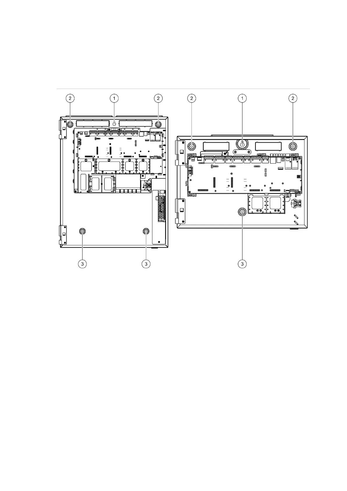 Fix the cabinet to the wall using five M4 × 30 screws and five Ø 6 mm wall plugs,