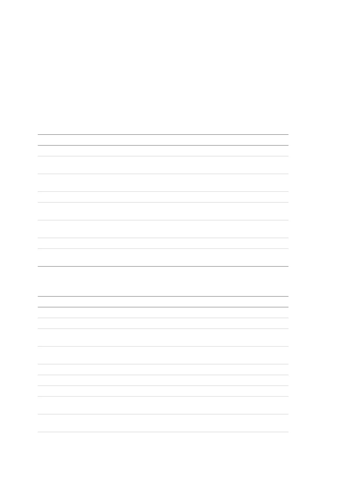 The complete range of control panels is shown in the following tables.