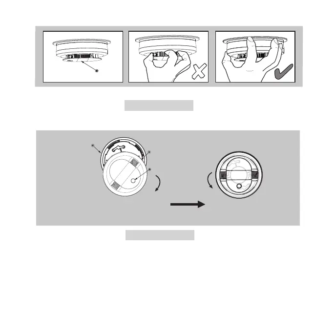 • Install the alarm fully on the mounting bracket by rotating the alarm in a clockwise direction (Figure 9-F).