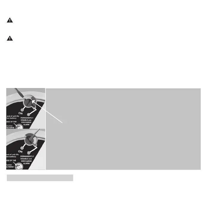 • Once discharged, the alarm will NO LONGER DETECT SMOKE OR CO.