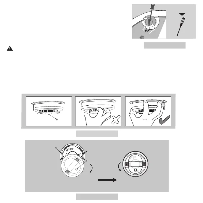 NOTE: Do not grab the shield to install or remove the alarm. Grab the alarm by the outside of the enclosure. (Figure 9-B).