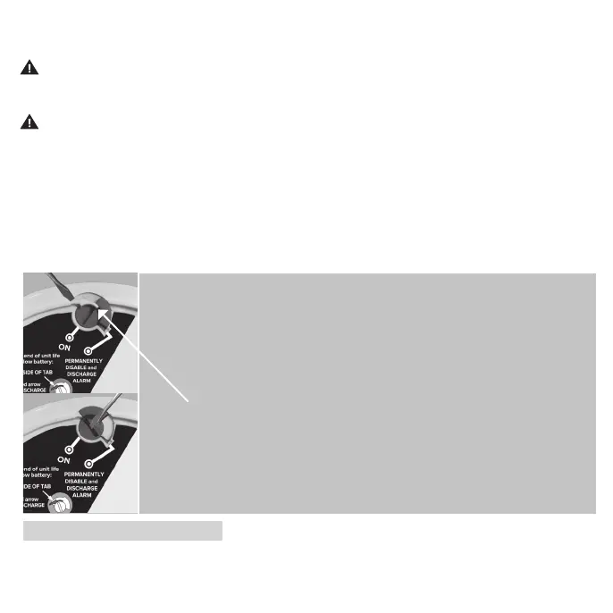 • Once discharged, the alarm will NO LONGER DETECT SMOKE OR CO.