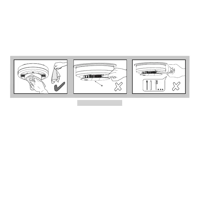 Do not use a hair dryer to clean the alarm, as it may damage the alarm and impact performance.
