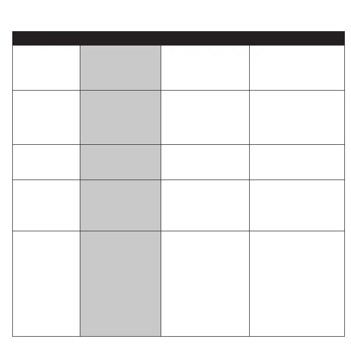 Operational Mode Visual Indications Audible Indications Action/Note