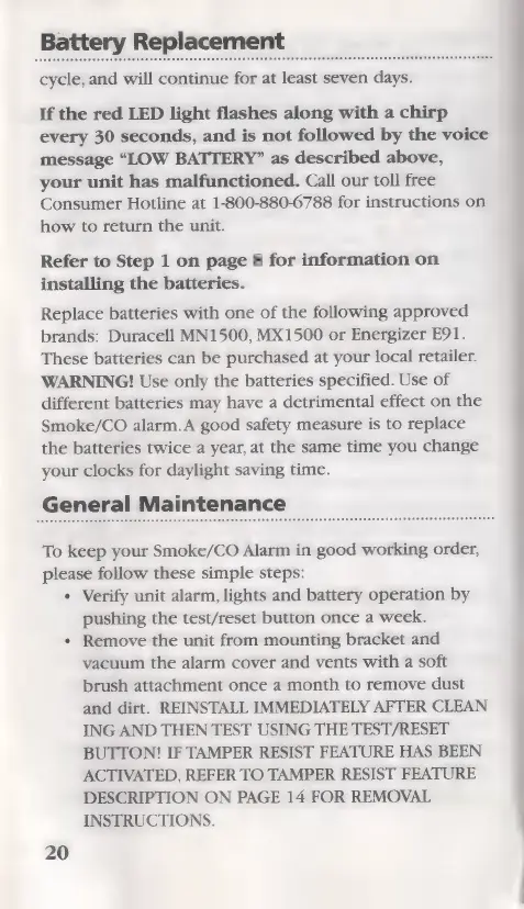Kidde NIGHTHAWK KN-COSM-B - Pe es es Ee Eer Pages 19-2! General Alarm Maintenance