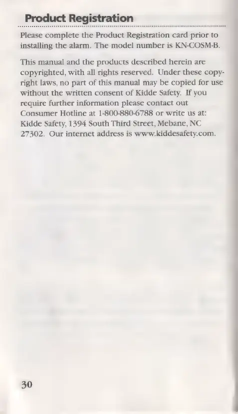 Kidde NIGHTHAWK KN-COSM-B - Product Registration; Registering Your Product