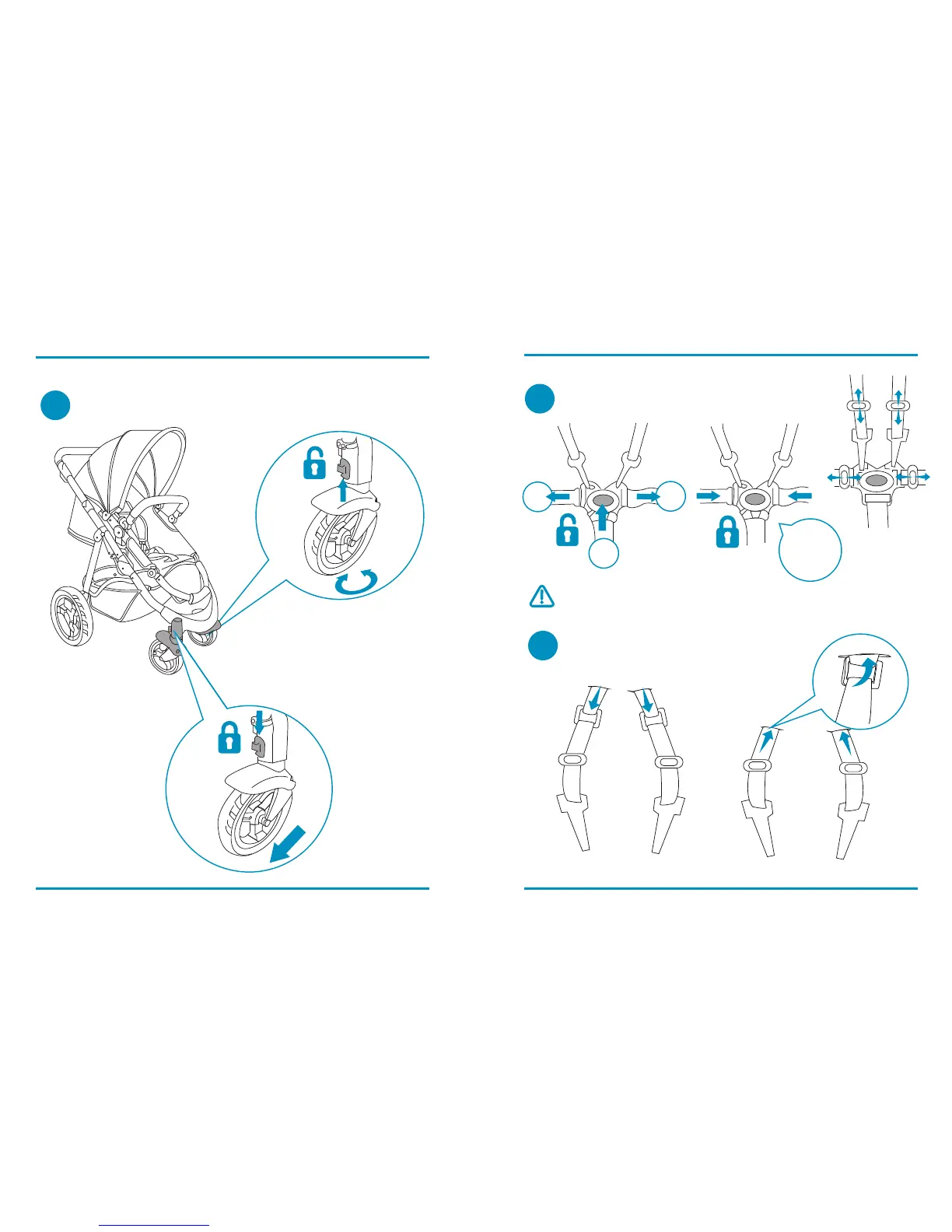Kiddicare IMAX ELITE - Wheel and Harness Features; Front Wheel Swivel Mode; Adjusting the Harness