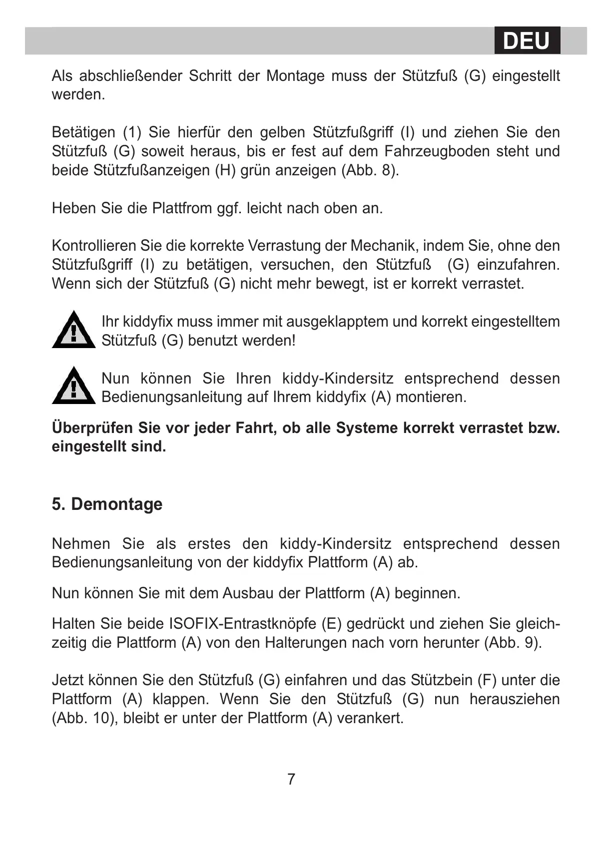 Stützfuß (G) benutzt werden!