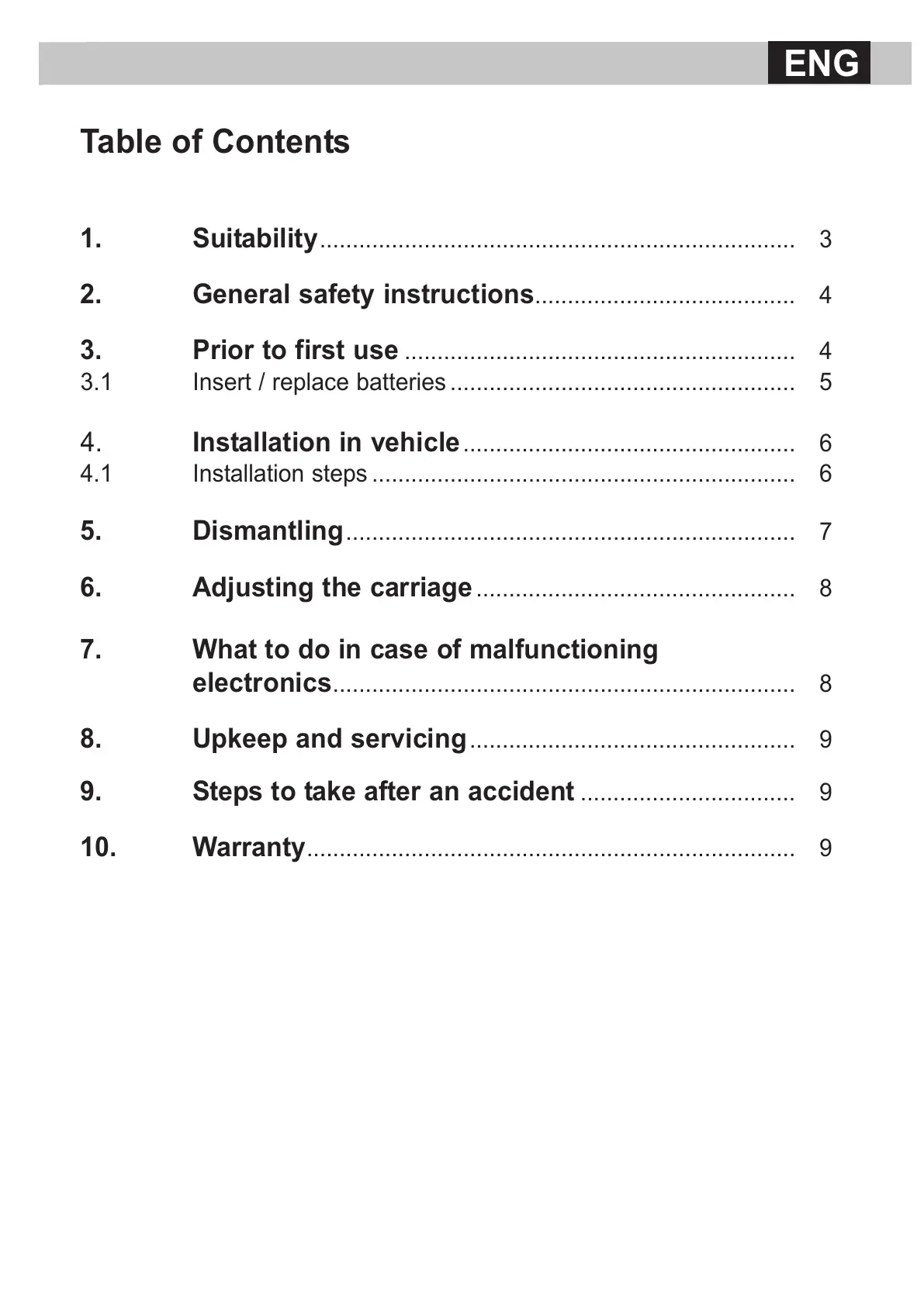 10. Warranty........................................................................... 9