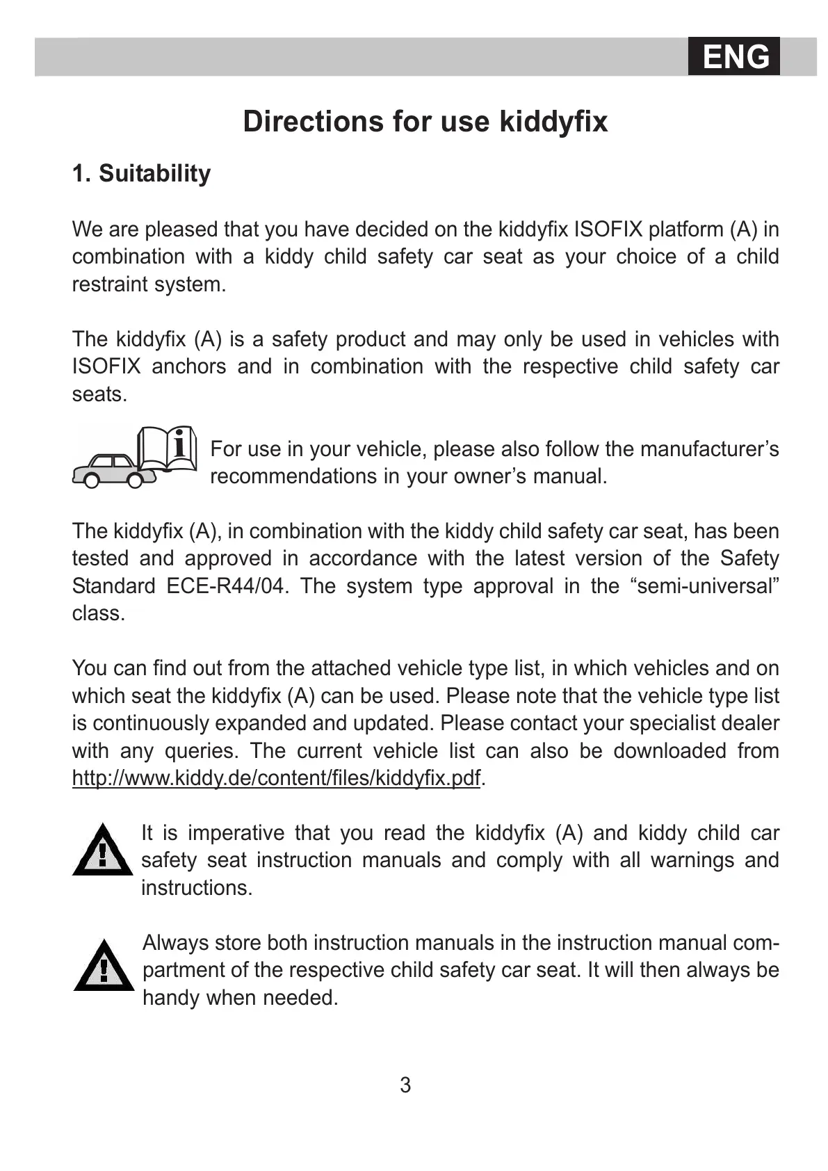 It is imperative that you read the kiddyfix (A) and kiddy child car