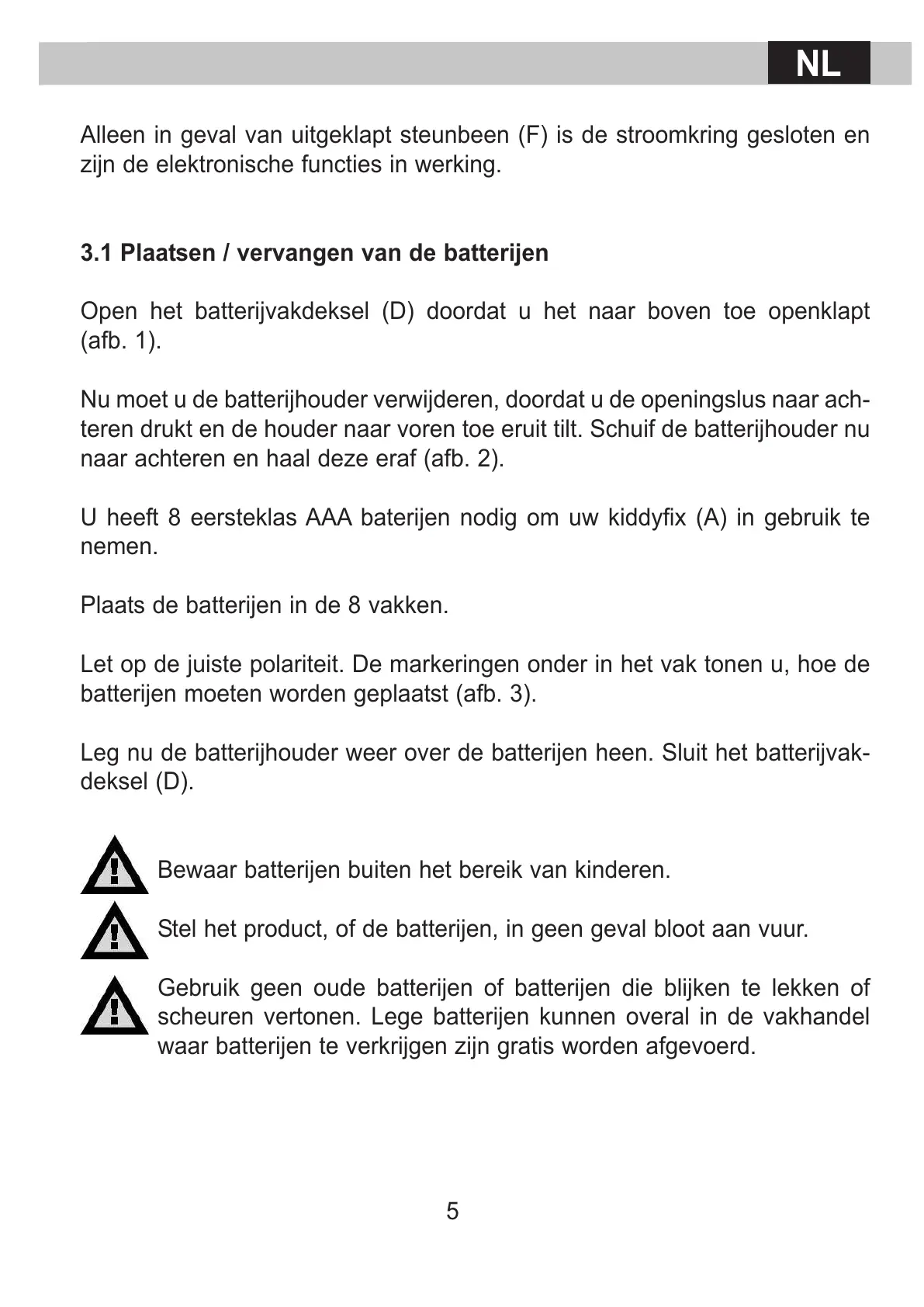 3.1 Plaatsen / vervangen van de batterijen