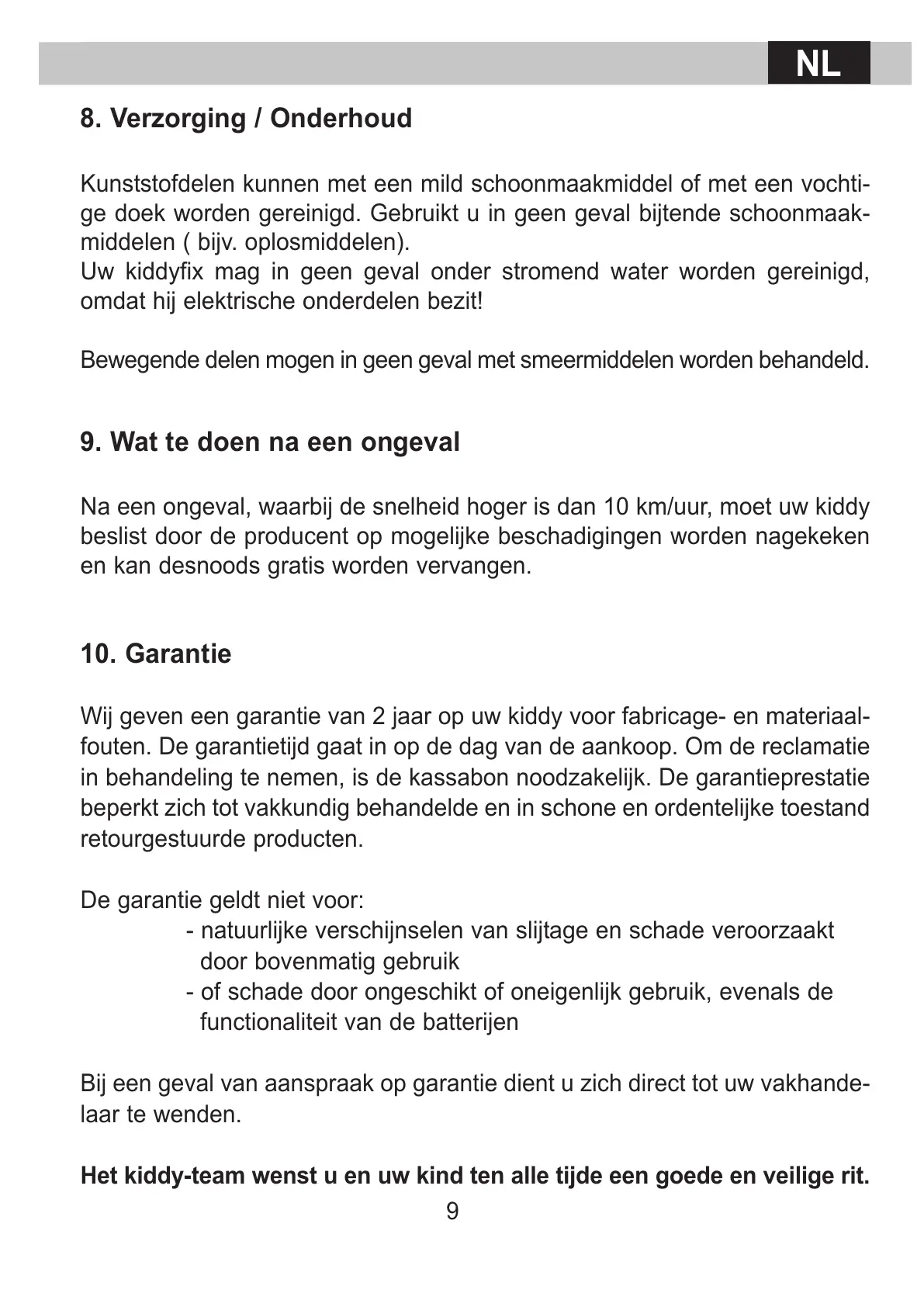 Wij geven een garantie van 2 jaar op uw kiddy voor fabricage- en materiaal-
