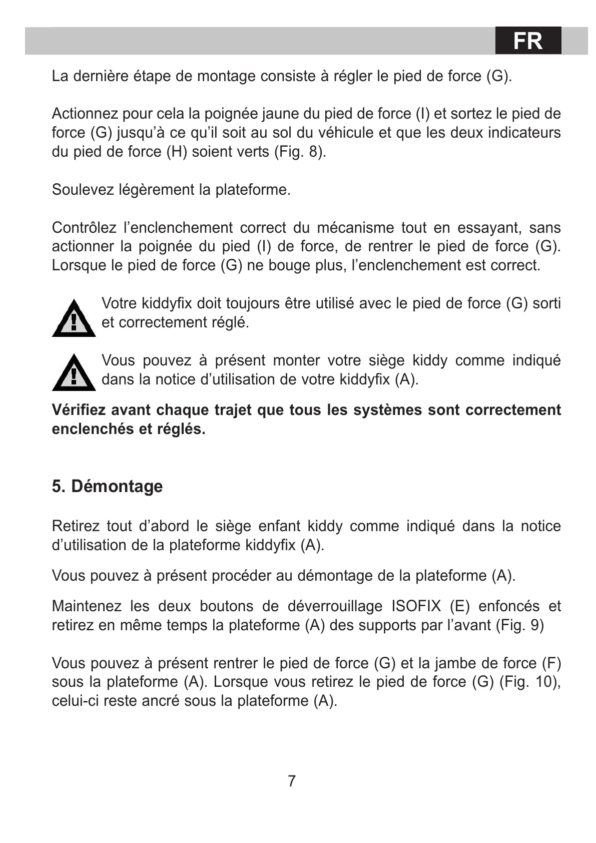 Votre kiddyfix doit toujours être utilisé avec le pied de force (G) sorti