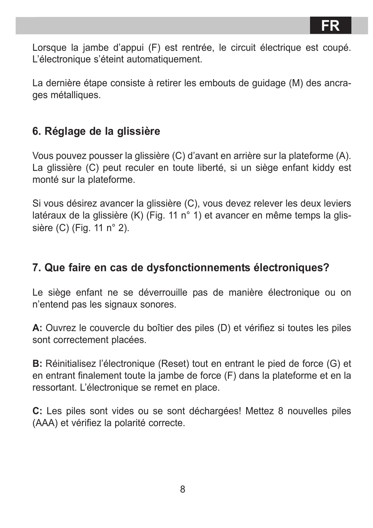 La glissière (C) peut reculer en toute liberté, si un siège enfant kiddy est