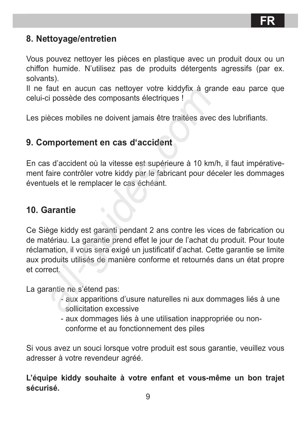 Ce Siège kiddy est garanti pendant 2 ans contre les vices de fabrication ou