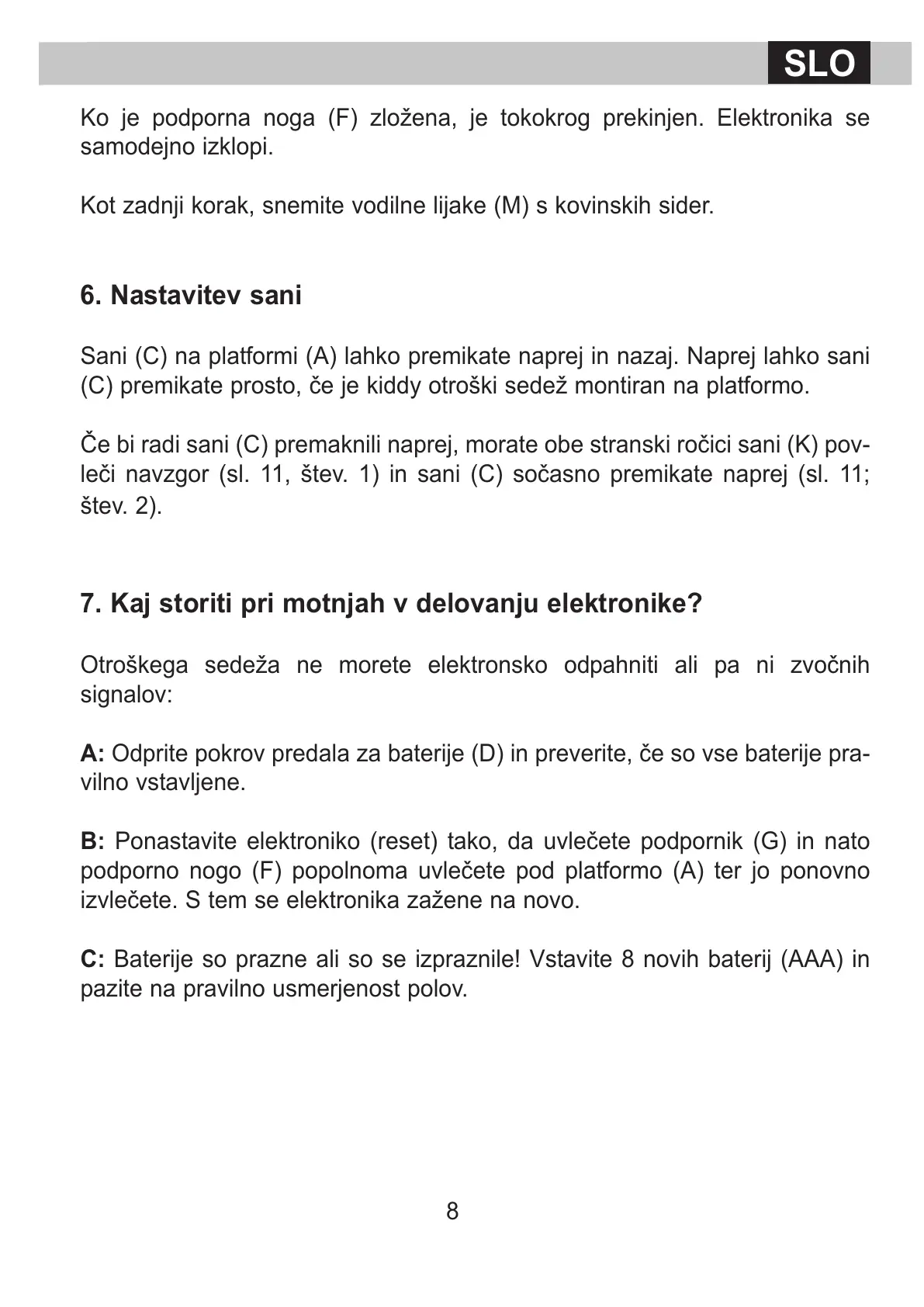 Če bi radi sani (C) premaknili naprej, morate obe stranski ročici sani (K) pov-