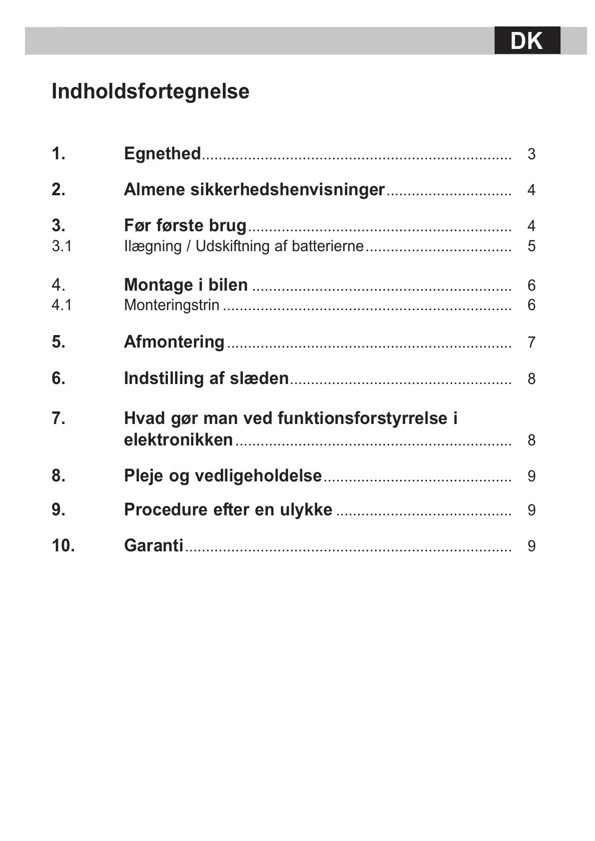 10. Garanti.............................................................................. 9
