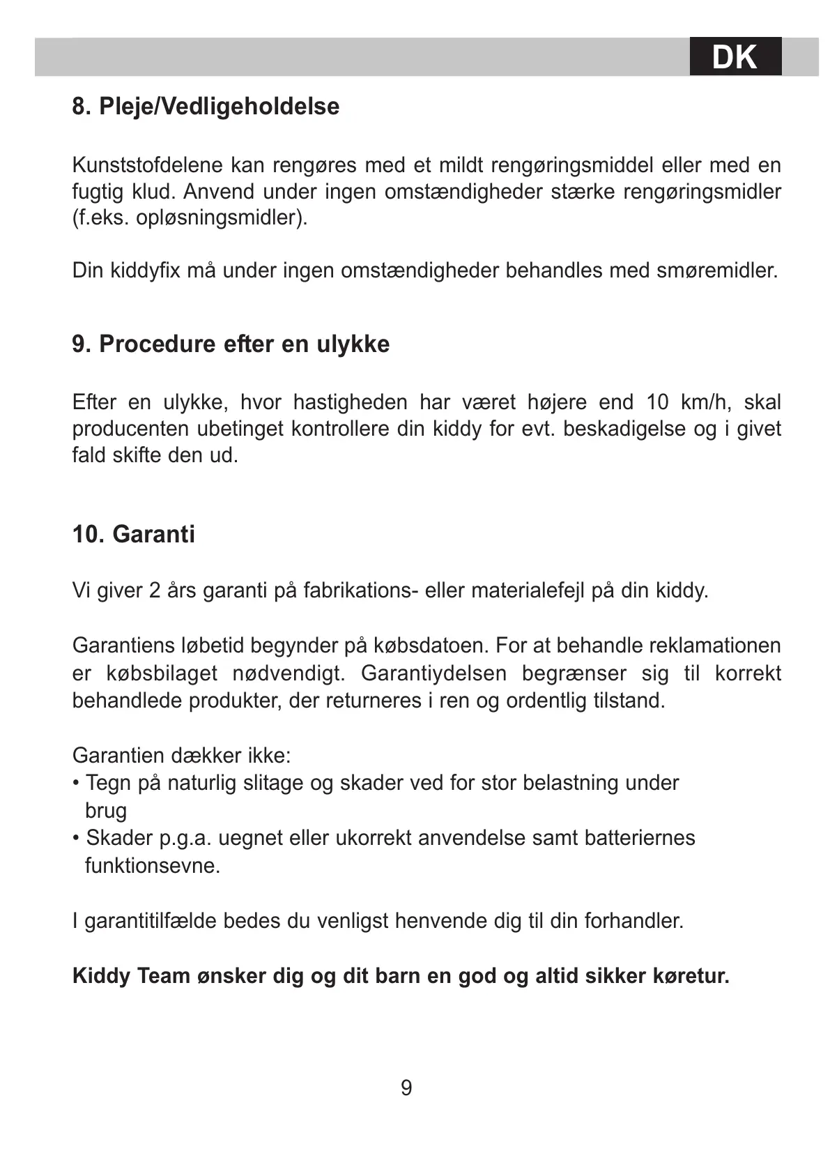 Vi giver 2 års garanti på fabrikations- eller materialefejl på din kiddy.