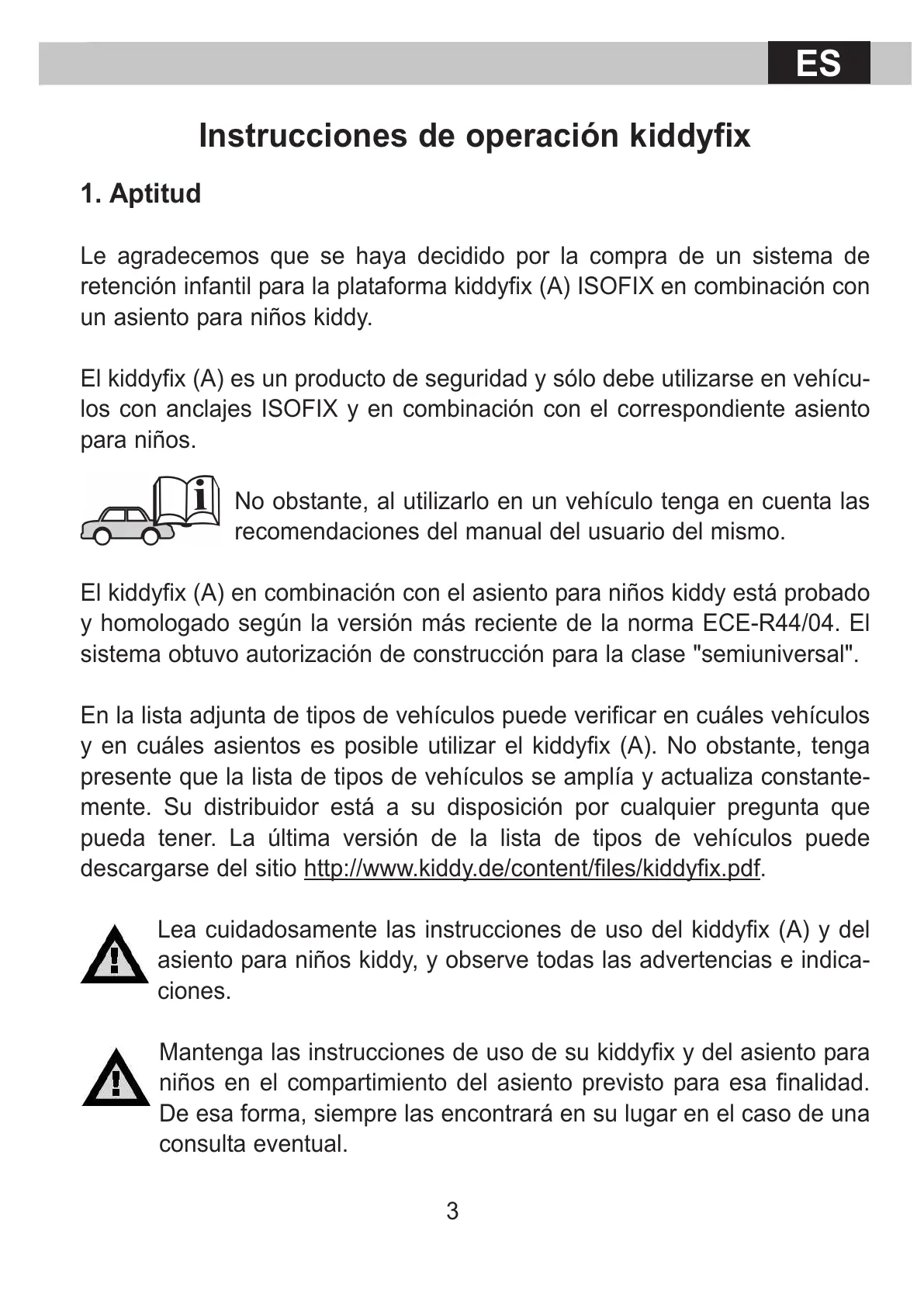 Mantenga las instrucciones de uso de su kiddyfix y del asiento para