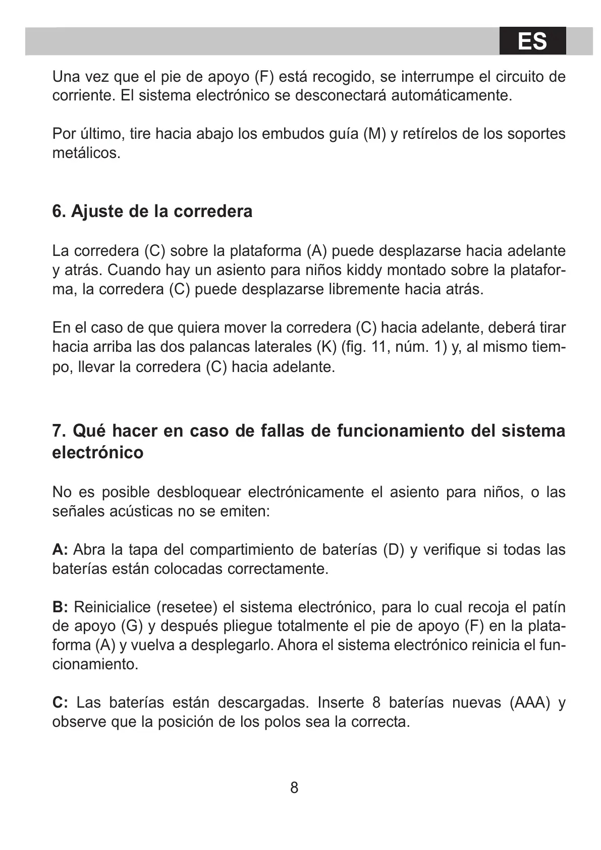 B: Reinicialice (resetee) el sistema electrónico, para lo cual recoja el patín